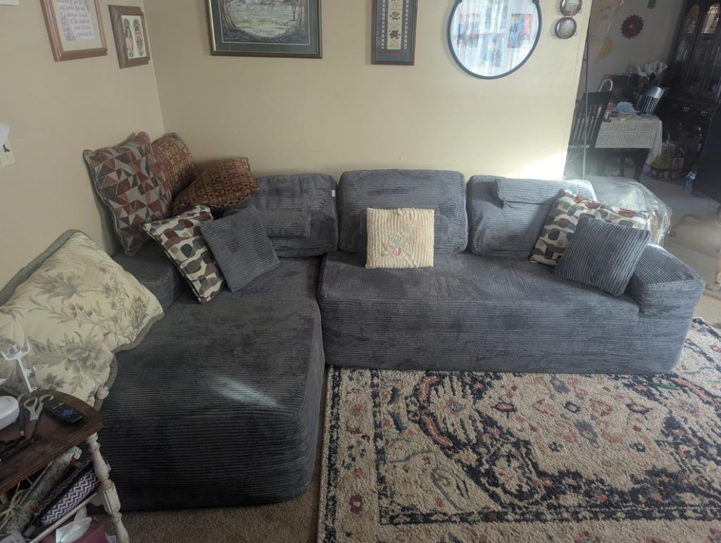La sala nos llegó perfectamente empacada! Me gustó mucho, es compacto y lo mejor sin duda es la comodidad que ofrece. Es muy suave e igual de firme que cualquier otro tradicional, me parece excelente relación calidad/precio.